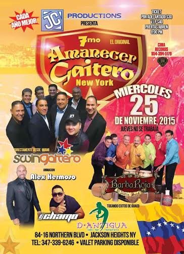 La cita de este séptimo amanecer gaitero en NY es, a partir de las 8 PM, en 84-16 Northern blvd – Jackson Heights NY.